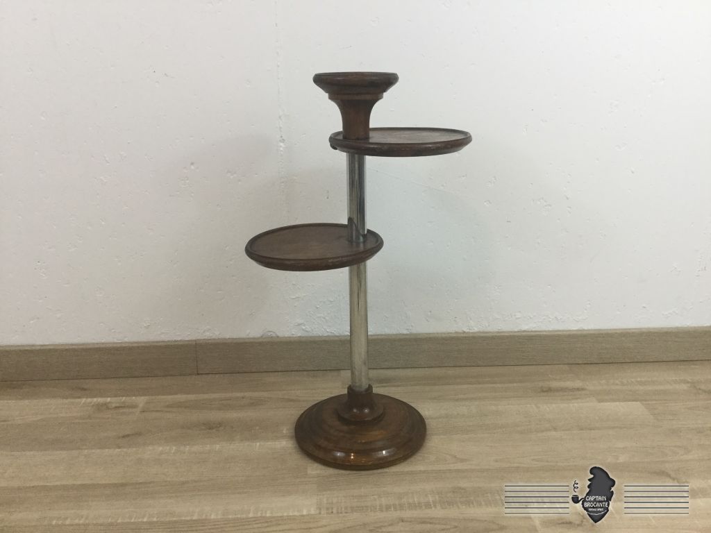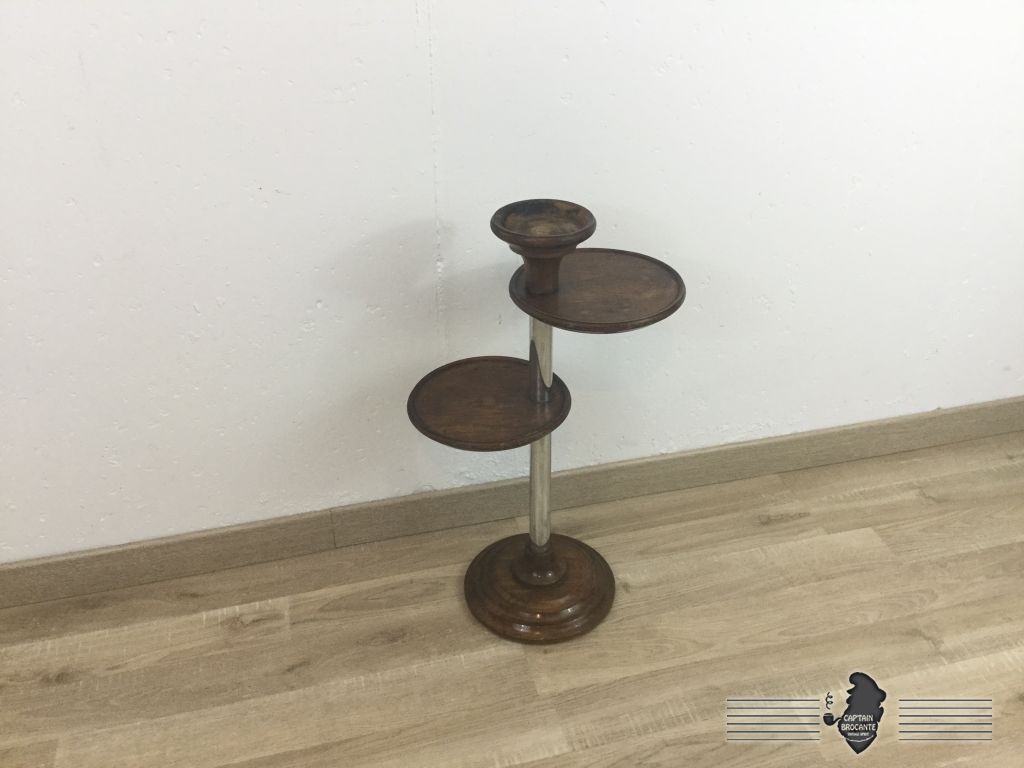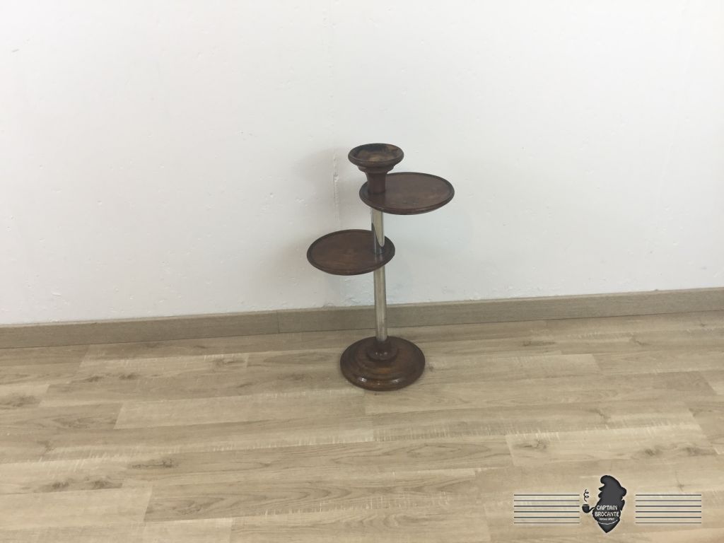 Superbe cendrier des années 50 sur pied en bois et métal dans le goût art déco, fonctionnel et décoratif il y a moyen de le détourner pour faire un porte-plante où un vide poche. Il peut s'intégrer n'importe ou dans votre intérieur.