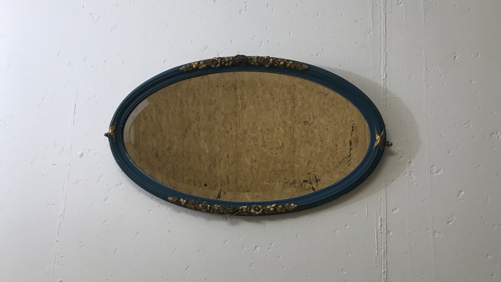 Miroir en bois et stuc, manque de la peinture à certain endroit (cela donne un cachet terrible).