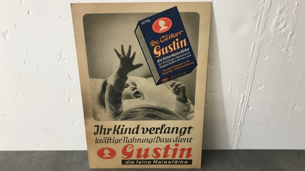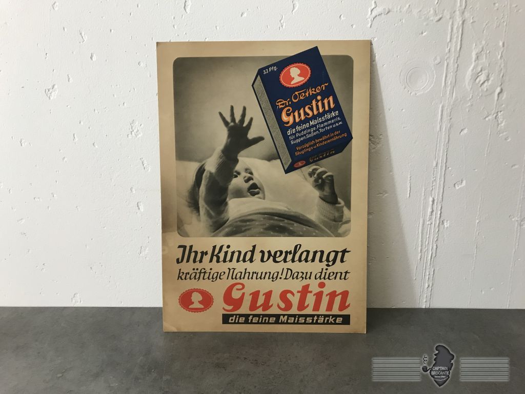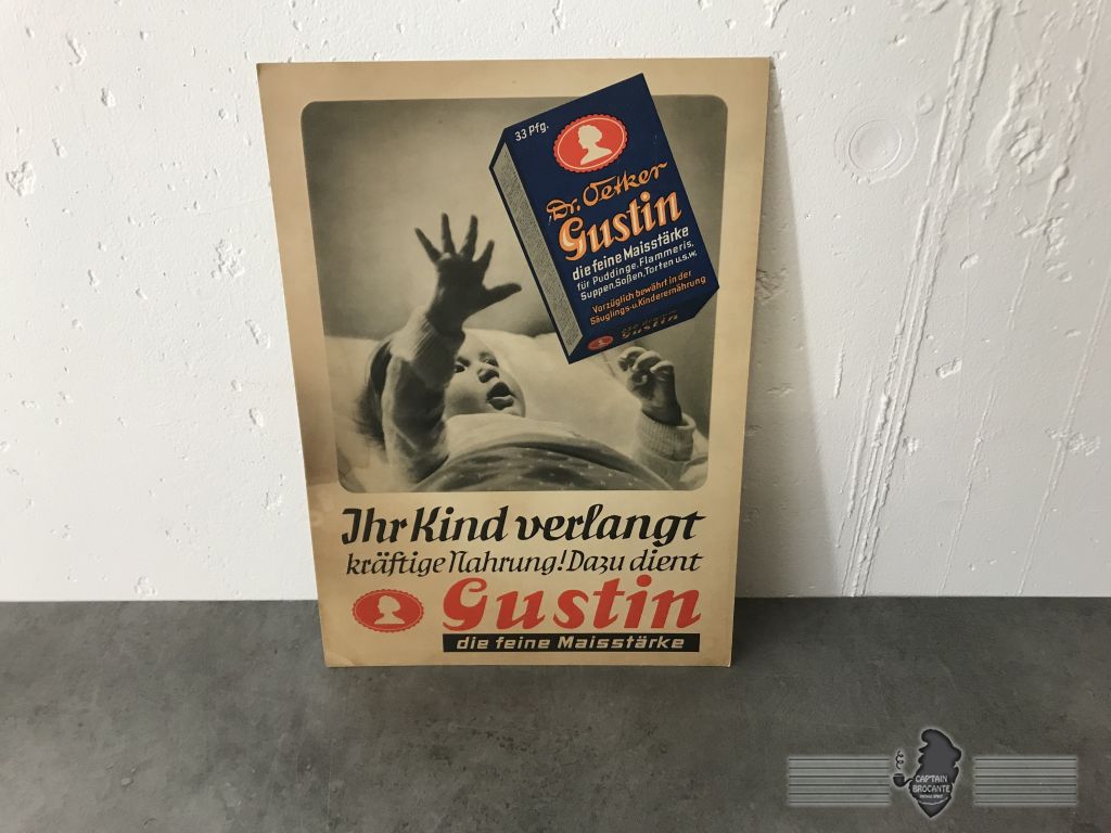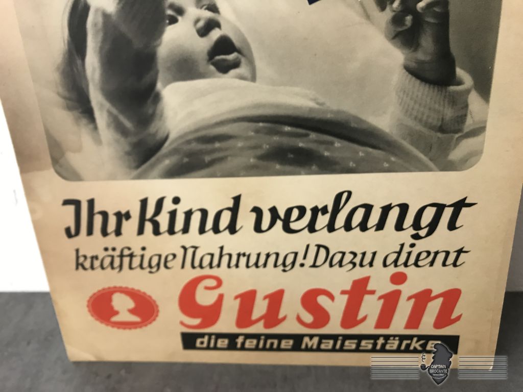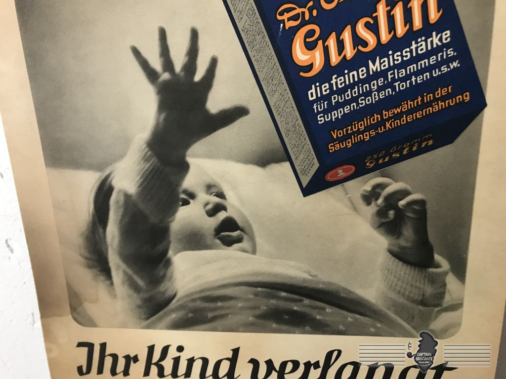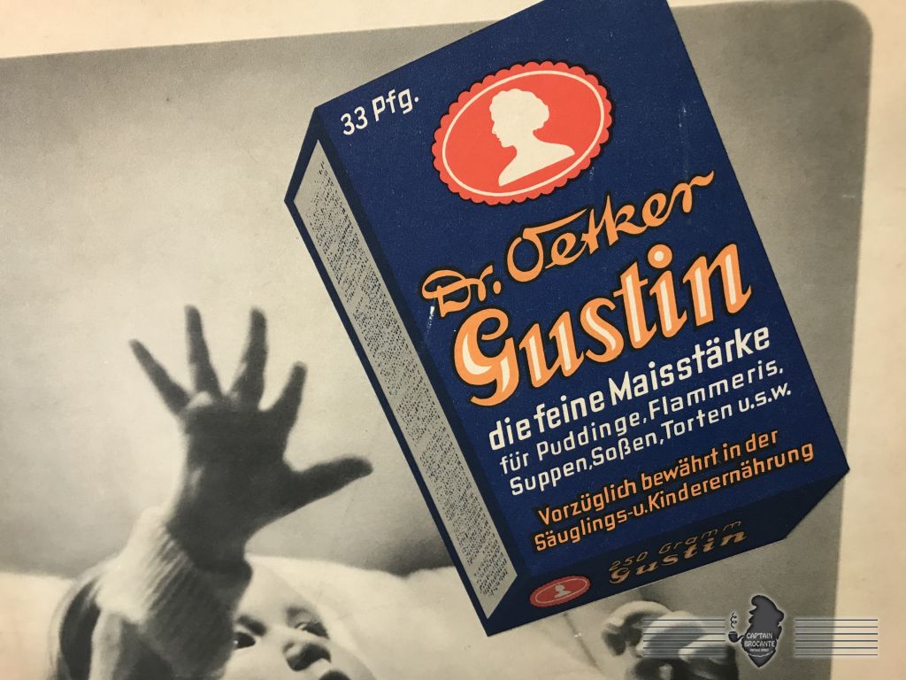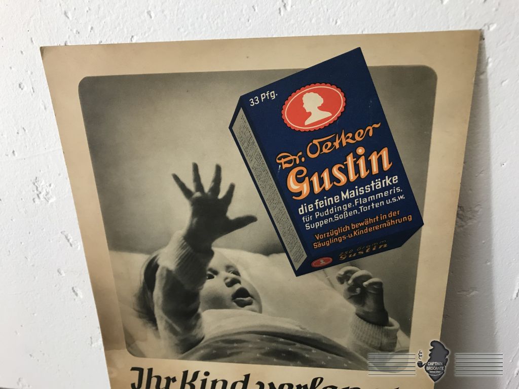Superbe affiche pour la marque Dr OETKER, rare à trouver car conçue sous l'occupation dans les années 1940. Très belle photo d'un enfant GUSTIN voulant attraper la boite.