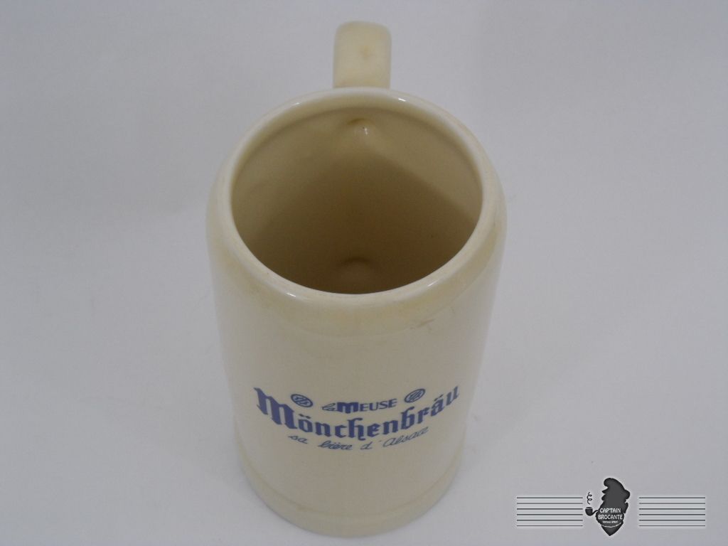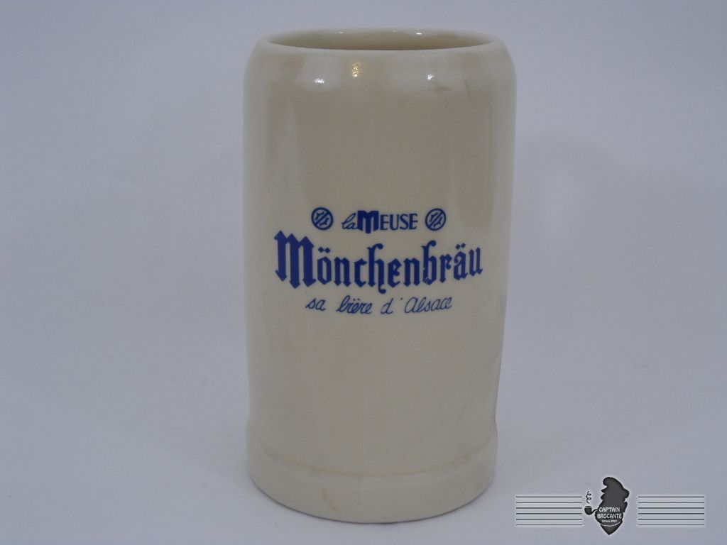 Très belle chope pour la bière "LA MEUSE MÖNCHENBRÄU sa bière d'alsace", idéal pour un collectionneur mais vous pouvez également l'utiliser pour toutes sortes de boissons.