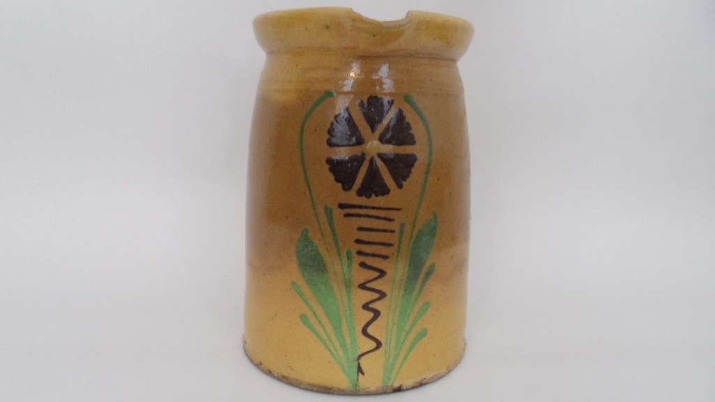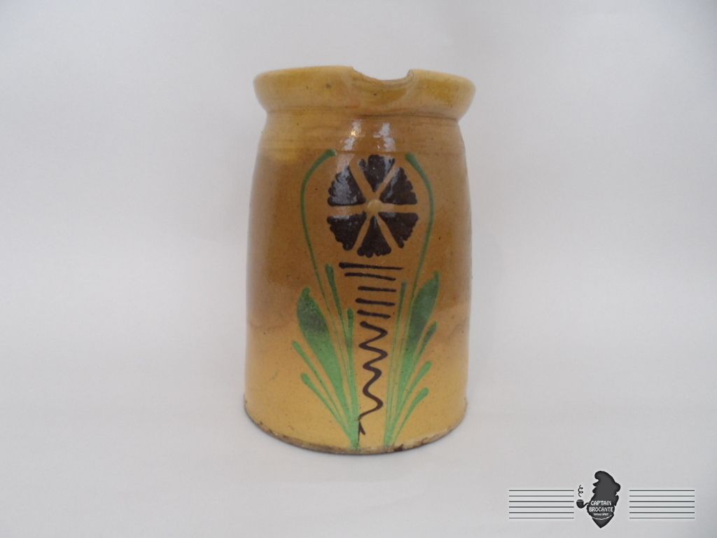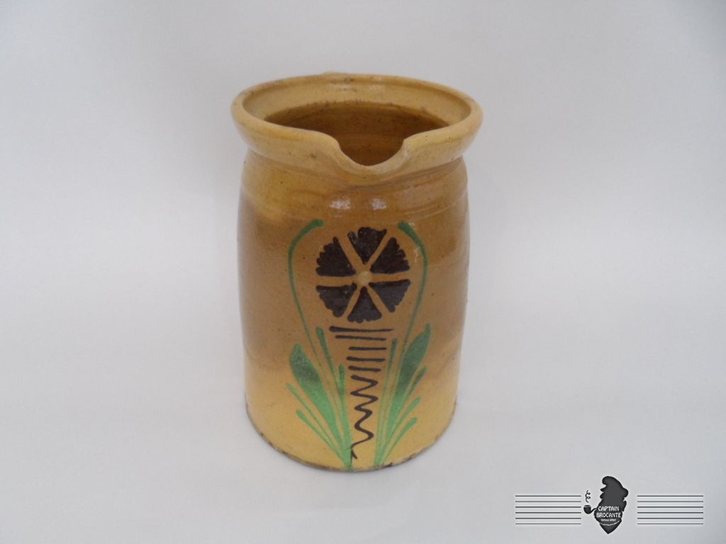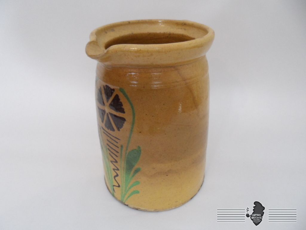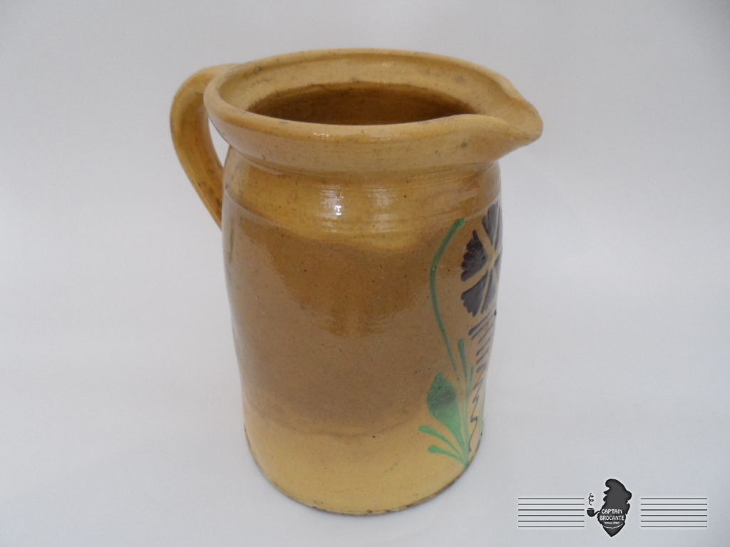 Pot à lait en terre vernissée avec décor de fleur, très belles couleurs, en bon état.